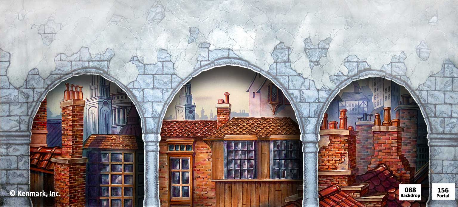 Description: Go back in time with this splendid and realistic Stone Arch Portal. This drops works well alone, or use it to enhance and add dimension to a variety of backdrops.