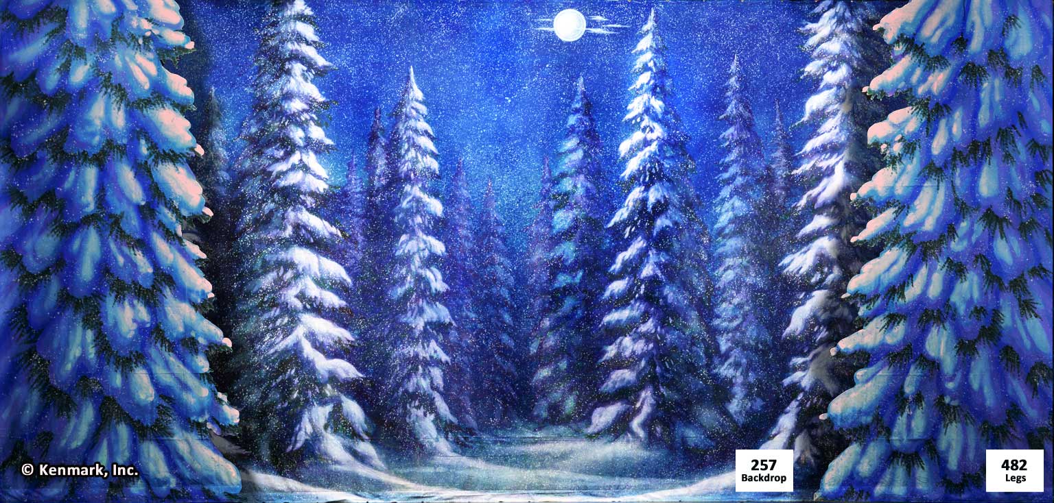 This is a stunning Snow Forest backdrop. For an even more spectacular look, pair it with one or more sets of our Snow Forest – Legs such as D482.