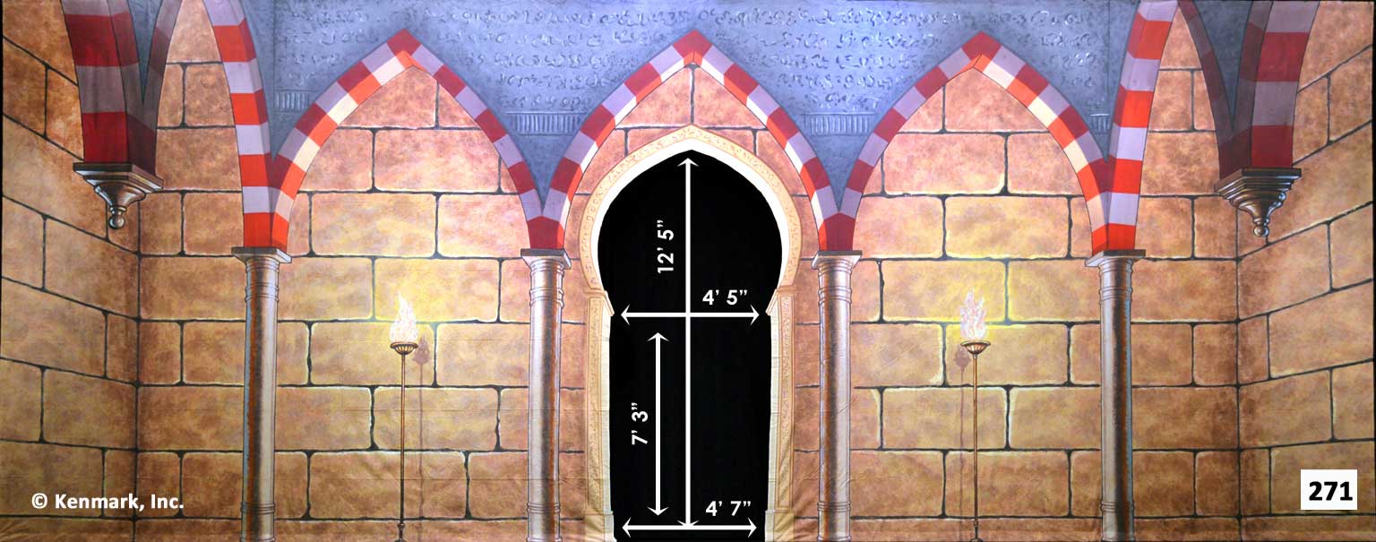 Arabian Court stone wall with a cut-out opening. For a more dramatic effect, pair it with D276 Arabian Court Red Drape - Border/Legs.