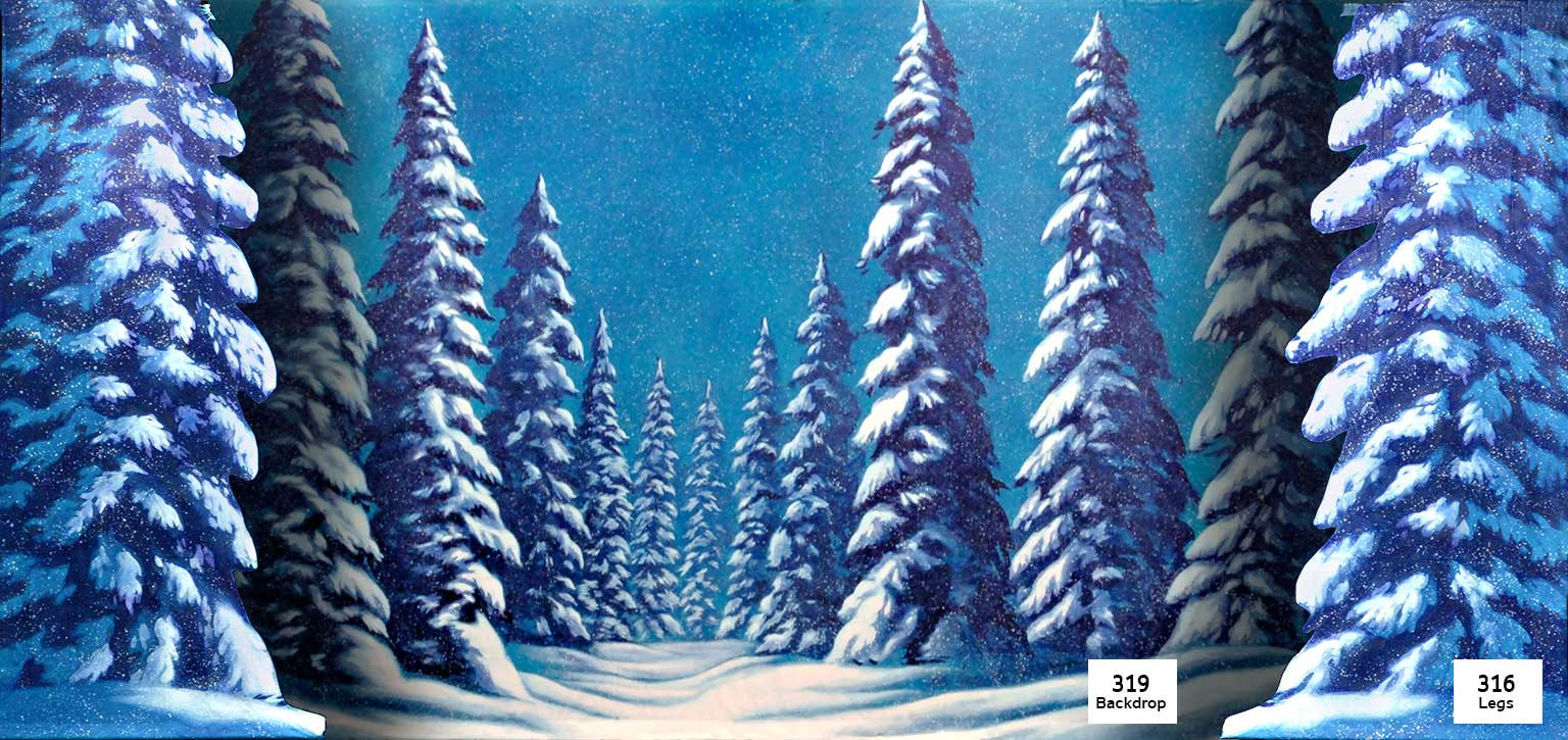 Gorgeous snow forest backdrop in shades of deep blue and white. Perfect for "Nutcracker" or any production requiring a stunning winter wonderland.