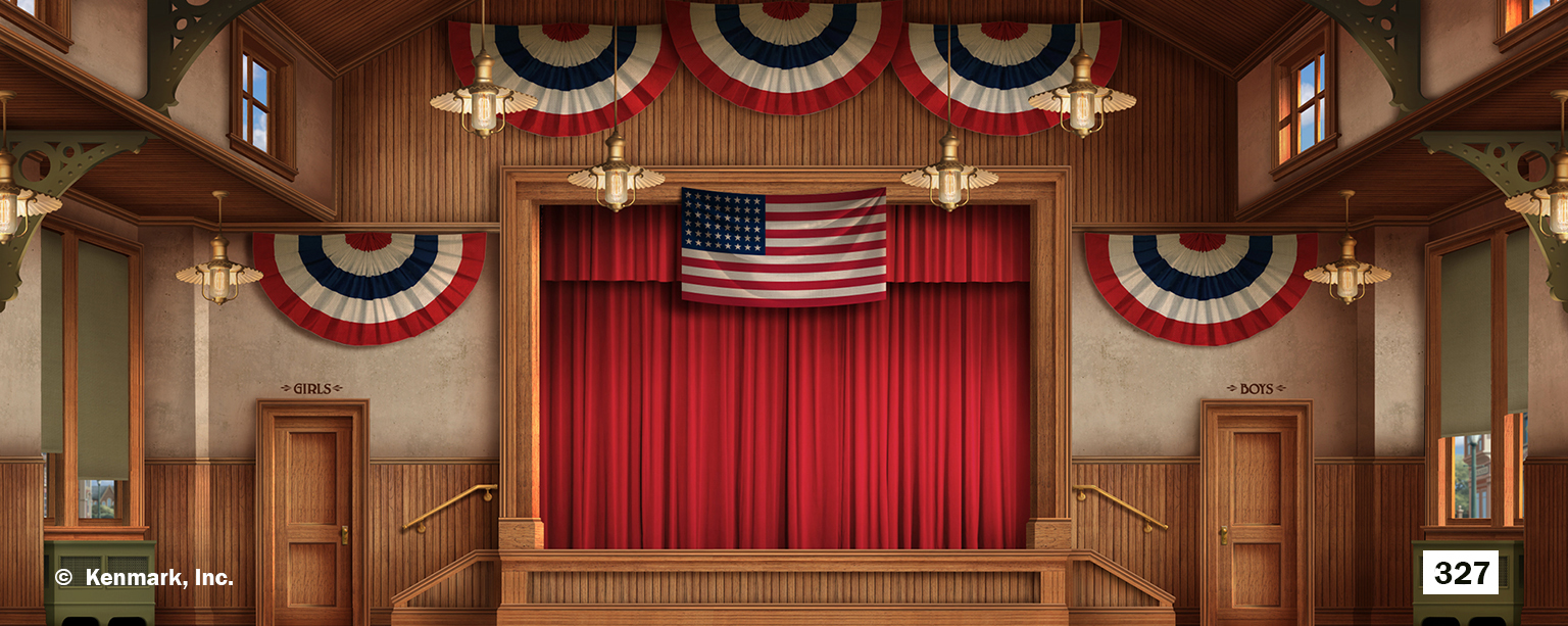 Description: Our newest High School Gymnasium is perfect for THE MUSIC MANWEST SIDE STORYHIGH SCHOOL MUSICAL or any show or dance revue where you want a high school look.