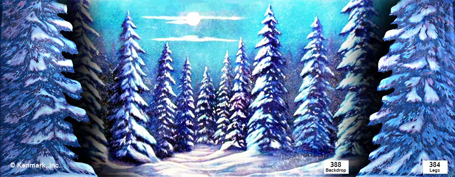 One of our most popular Snow Forest backdrops for Nutcracker. To really make your set special, pair it with one or more of our legs sets, such as D384 Snow Forest - Legs.