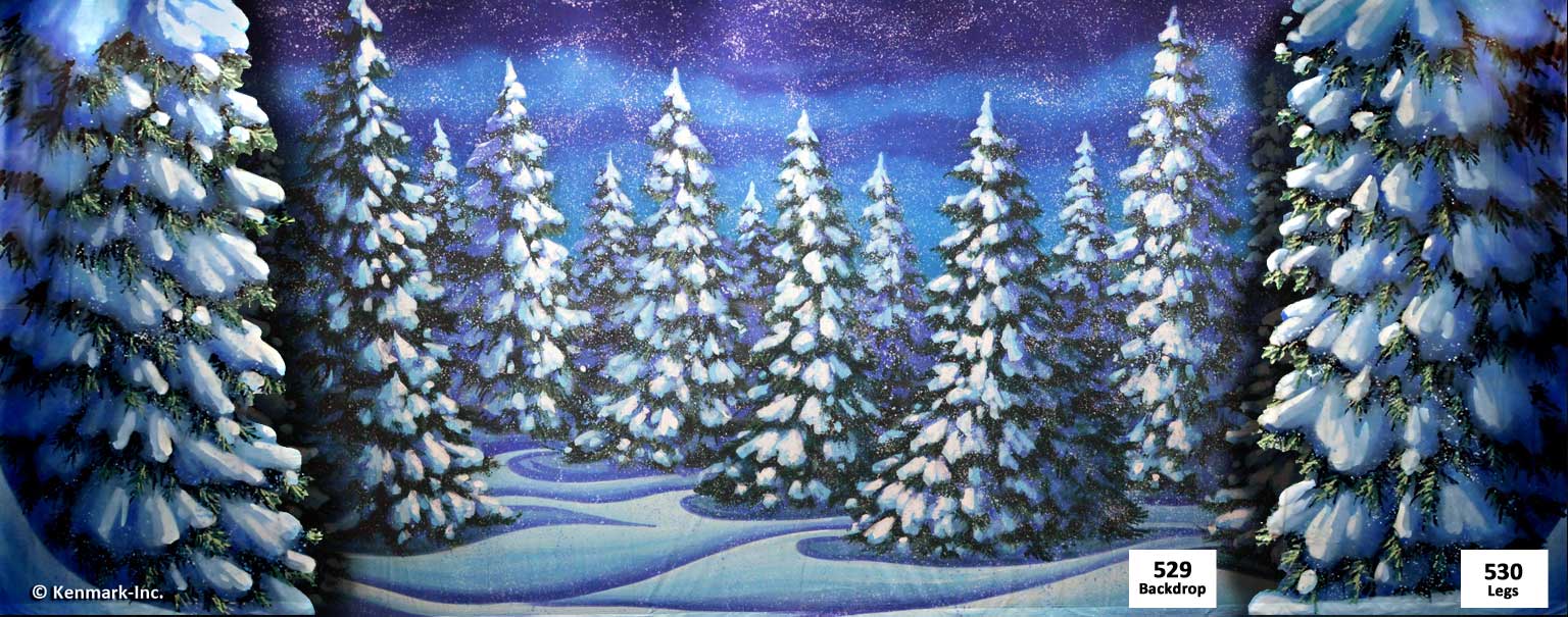 Description: The perfect Snow Forest for your NUTCRACKER production. This beautiful Snow Forest Backdrop looks even more stunning when paired with one of our Snow Forest Legs, such as D530, D531 or D532.