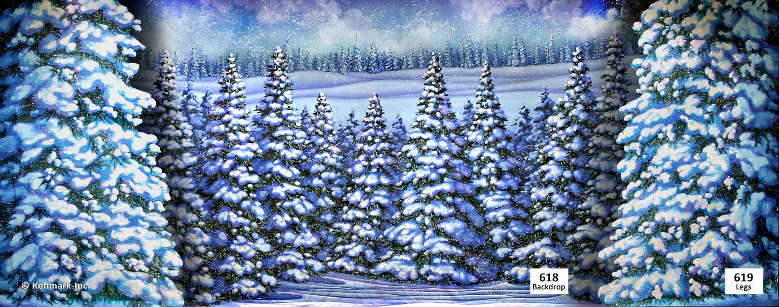 One of our stunning Snow Forest Backdrops to enhance your Nutcracker performance. Pair it with one of our leg sets, such as D619 Snow Forest - Legs for a truly polished look.