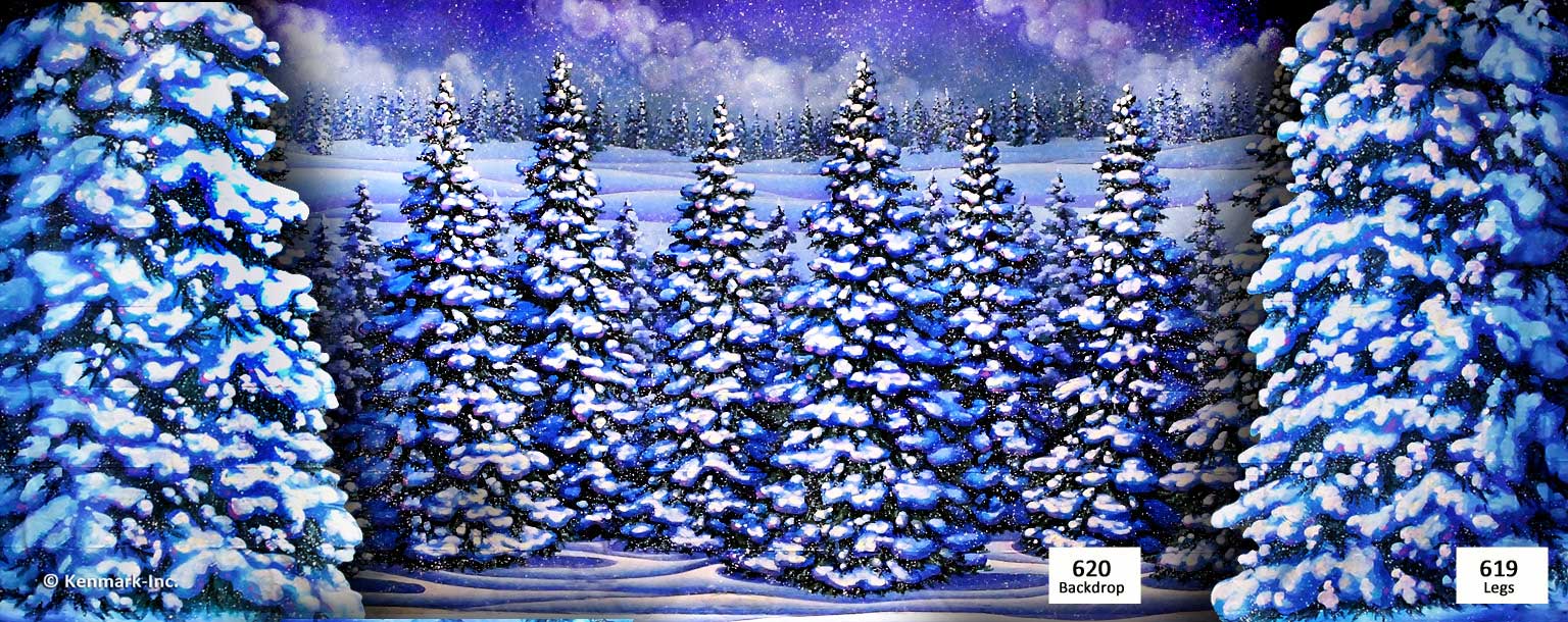 You can almost hear the snow falling in this lovely serene Snow Forest Backdrop. It is sure to add a beautiful background for your Nutcracker performance or any winter scene. For an even more spectacular look, pair it with one of our leg sets such as D619 Snow Forest – Legs.